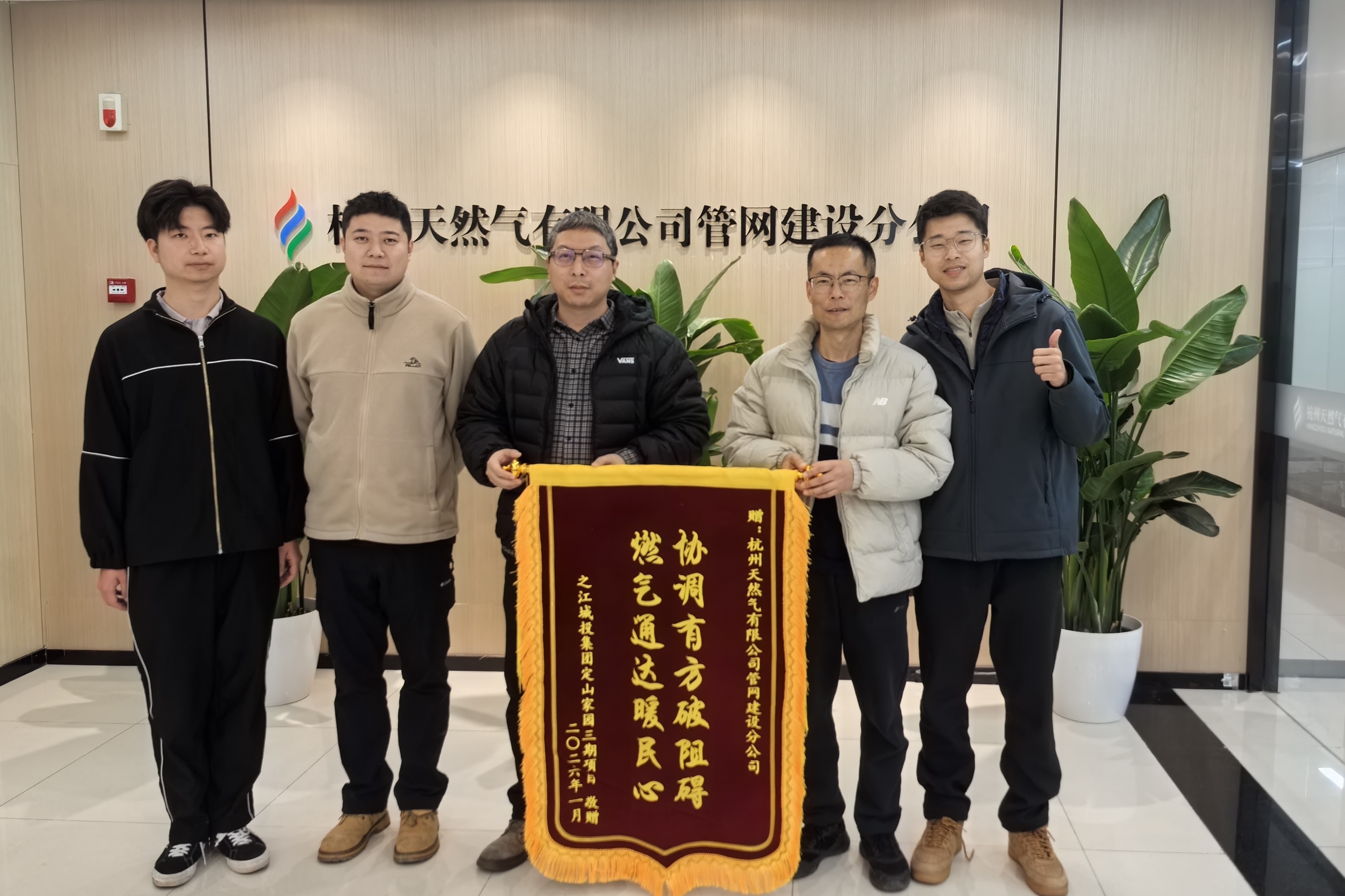 1月28日,管網建設分公司收到杭州之江城市建設投資集團有限公司贈送的錦旗,感謝分公司在定山家園三期燃氣通氣工作中展現的專業擔當與高效協同。這面錦旗,既是對我公司服務民生的充分肯定,更是政企協作破解民生難題的生動實踐。