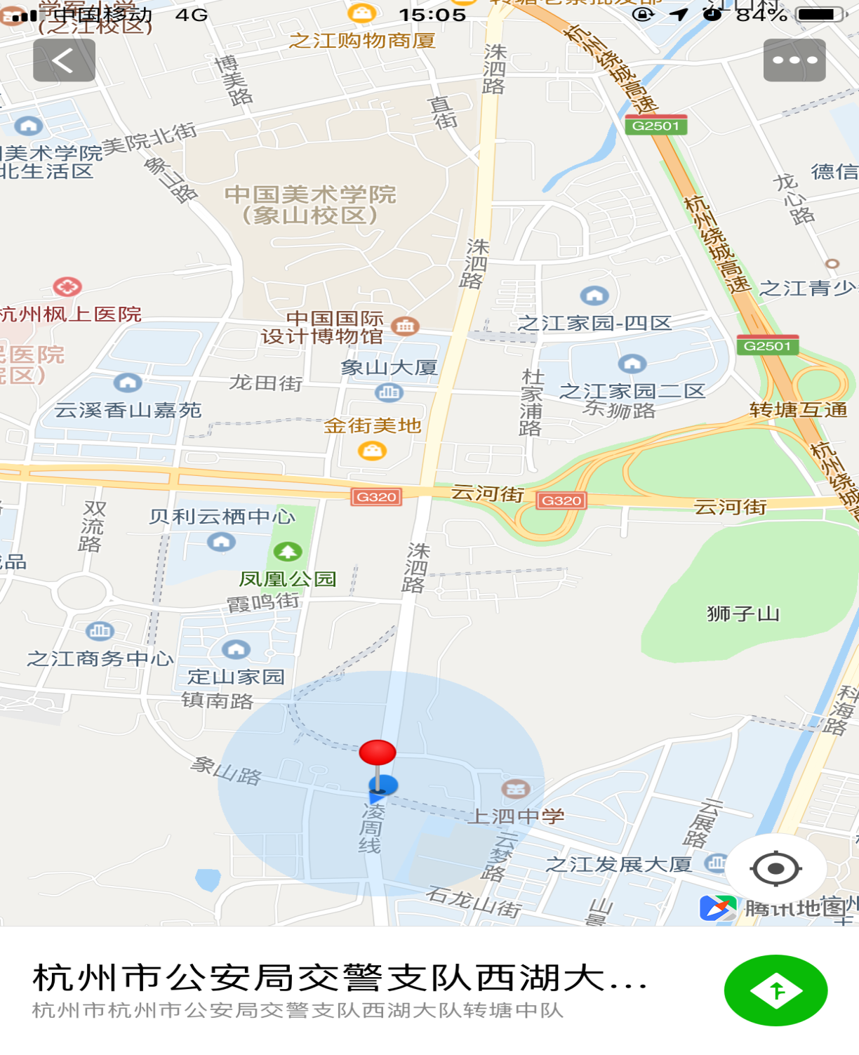 注:圖中紅色標注處為新轉塘營業廳地址位于洙泗路與象山路交叉口(杭州公安交警支隊西湖大隊轉塘中隊附近)。